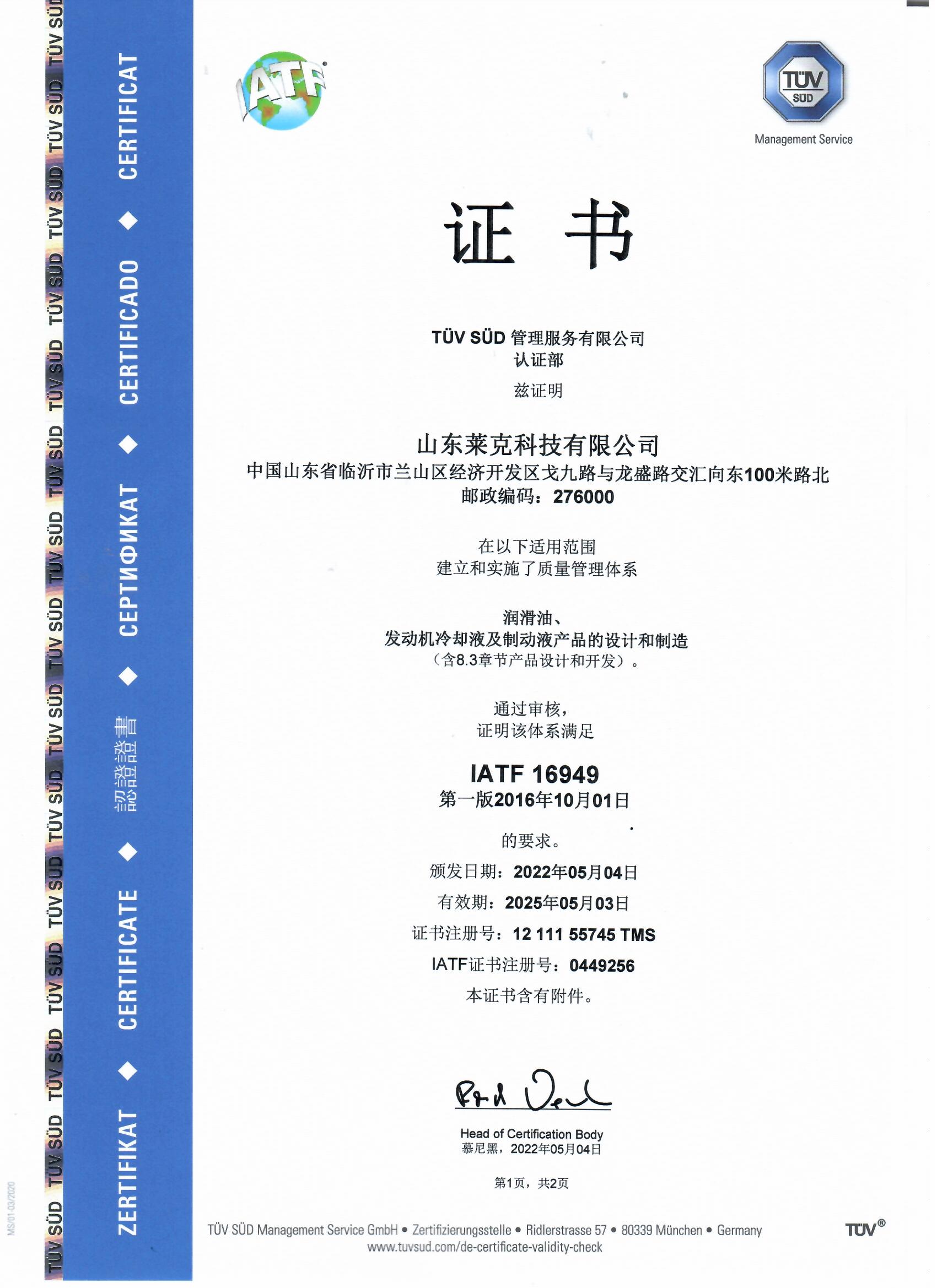 我们全力打造出值得信赖的润滑品质,产品通过质量环保安全管理体系和标准组织和欧美行业协会的认可